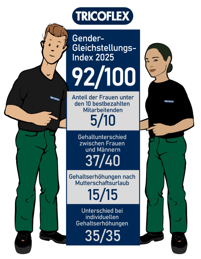 Bei TRICOFLEX ist die Gleichstellung von Frauen und Männern nicht nur eine gesetzliche Verpflichtung, sondern ein zentraler Wert. Jedes Jahr berechnen wir unseren Gender-Pay-Gap-Index, um mögliche Unterschiede zu messen und Massnahmen zur Verbesserung zu identifizieren.