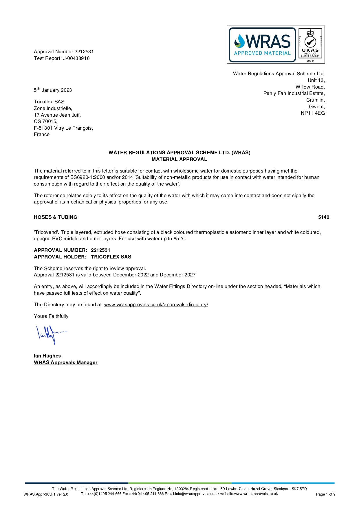 Certyfikacja WRAS - TRICOVEND